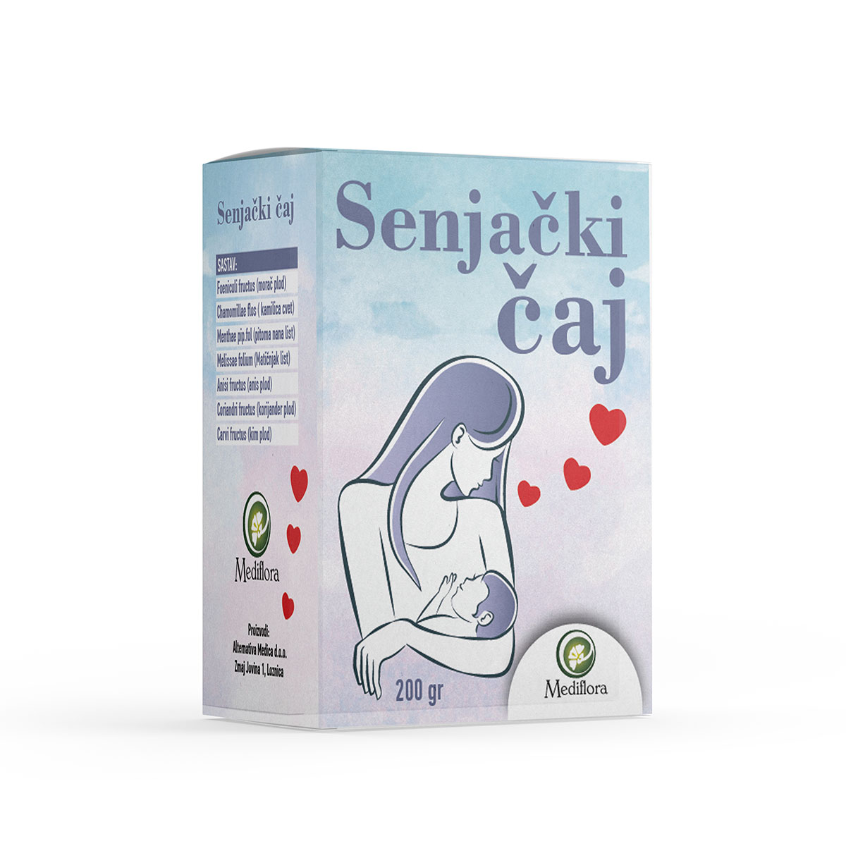 Senjački biljni čaj je osmišljen tako da ima umirujući efekat na probavni sistem majki i njihovih beba. Čajna mešavina Senjački čaj sadrži niz korisnih sastojaka kao što su kim, anis, morač, kamilica,… koji pomažu u oslobađanju spazma mišića u stomaku.